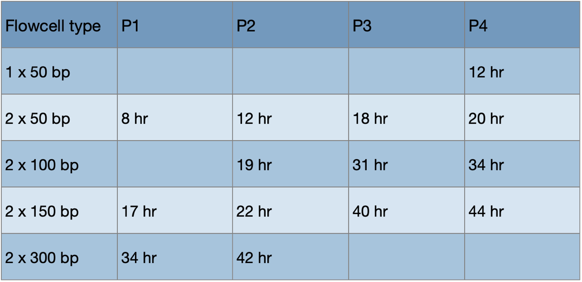 If your sequencing needs align with the output of one of the kit types, P1-P4, then you can sequence on a run of your own. If your needs fall in between the outputs of the kit types, or if you would like to sequence a small project on a more cost-effective larger flowcell, then the core can pool your samples with others on a shared run. The advantage of an independent run is potentially faster turnaround since you would not have to wait for other submissions to fill the run to capacity. The advantage of a shared run is flexibility to choose any output you need, and potentially lower cost.